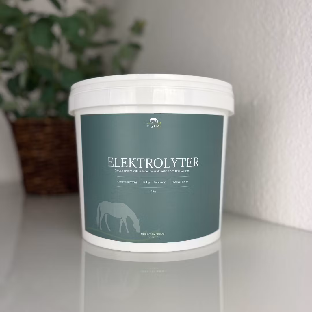 Eqvitals Elektrolyter är noggrant utvalda för att stödja hästens vätskebalans, muskelfunktion och återhämtning vid värme, träning eller transport. Formulan kombinerar Natriumklorid (bergsalt), Kalium- och Kalciumklorid för att ersätta förlorade salter och bibehålla normal, stabil muskel- och nervfunktion.